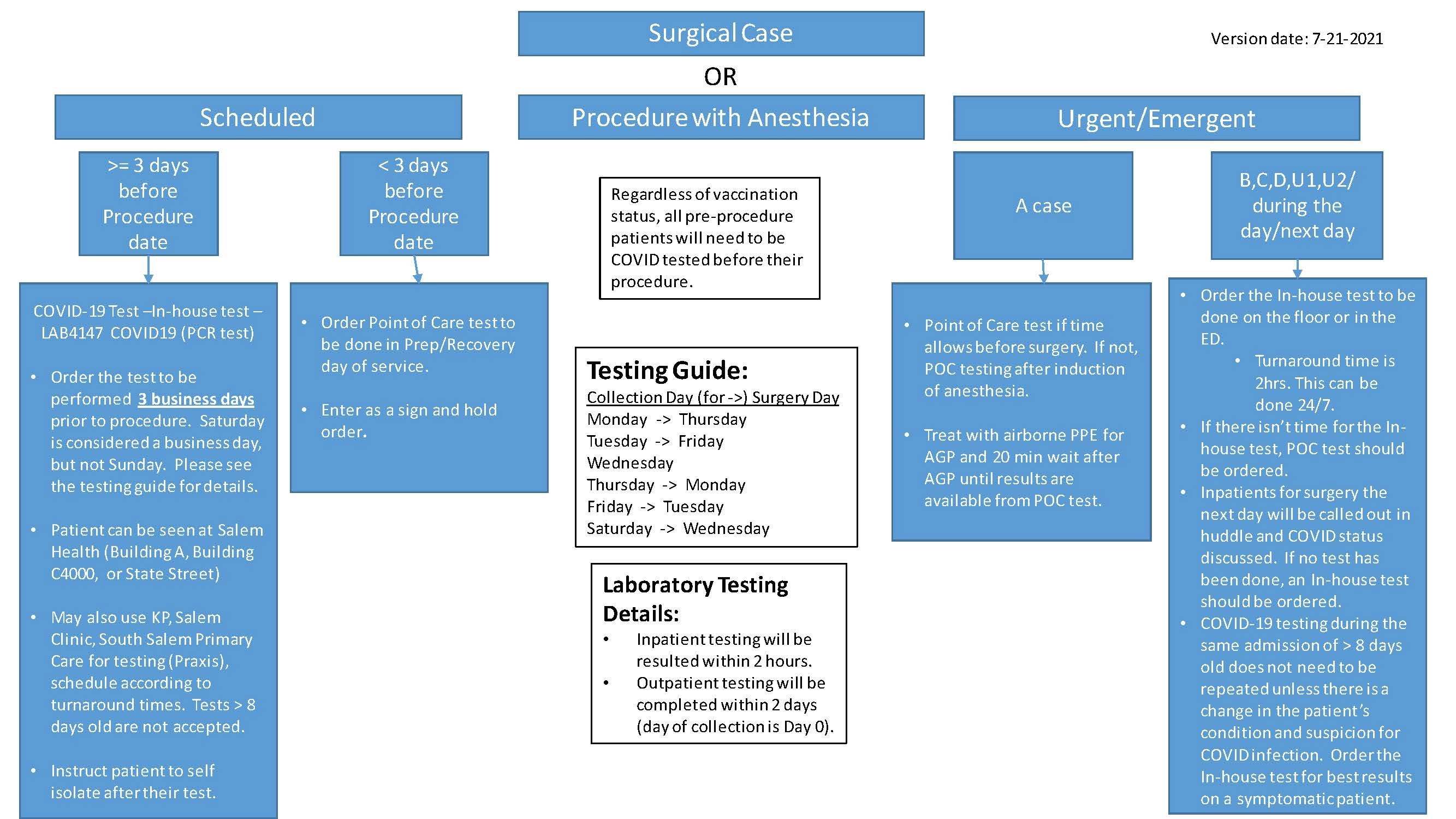 All patients undergoing procedures with anesthesia at Salem Health continue to require a COVID test, regardless of prior infection or vaccination status.
