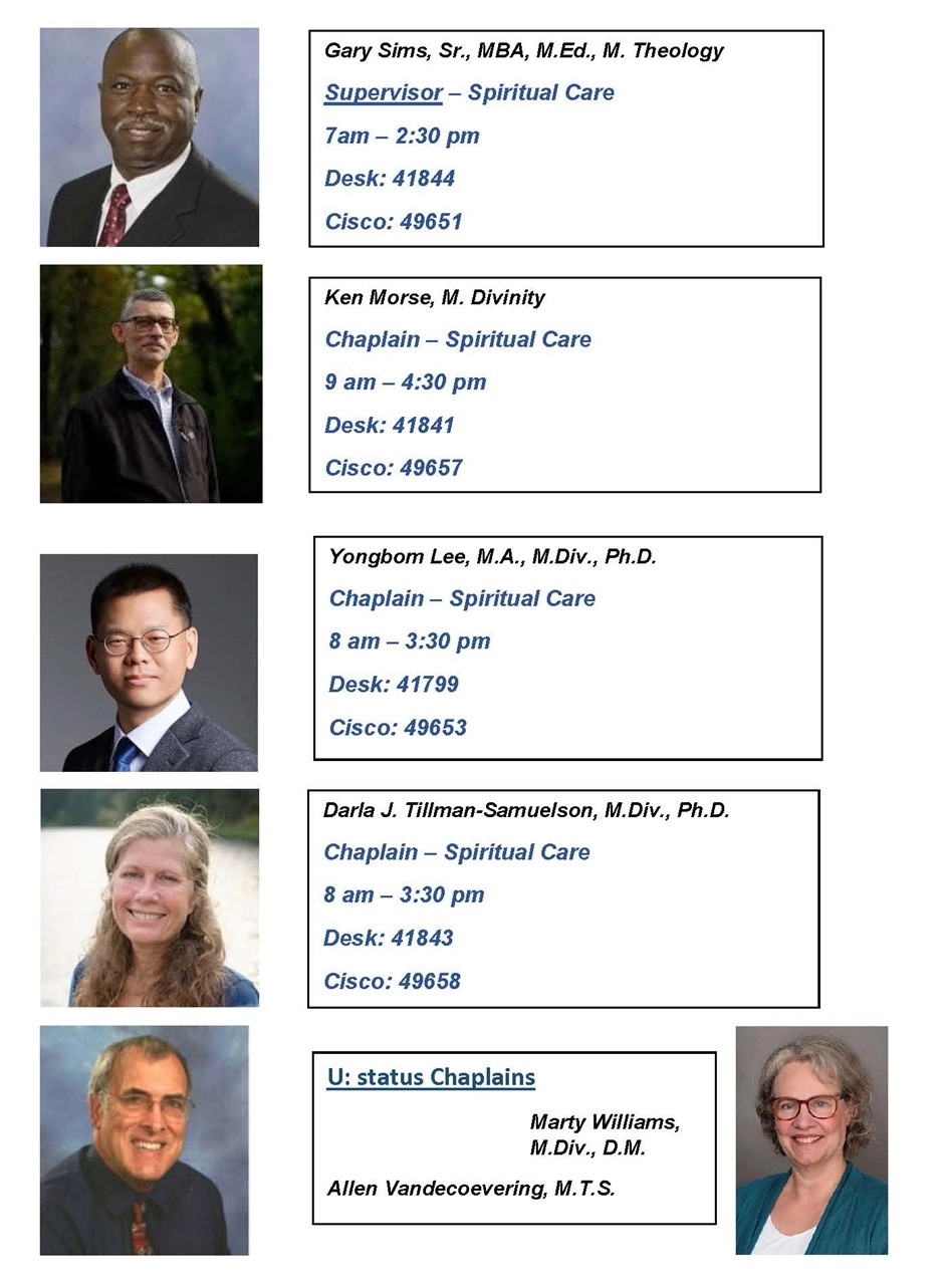 Salem Health’s Spiritual Team is growing! Team office hours are now Monday through Friday 7 a.m. to 7 p.m. We hope these extended office hours will allow us to respond quicker to requests and avoid any delay for patients, families and staff needs.