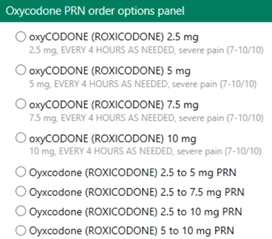 Pharmacy splits almost 2,000 five-mg oxycodone tabs each month to ensure that we can give patients doses of 2.5 or 7.5 mg. Because of how Epic talks to Omnicell, nurses use tablets previously split by pharmacy to make five or 10 mg doses about 12 times per day (~4,000 doses per year).