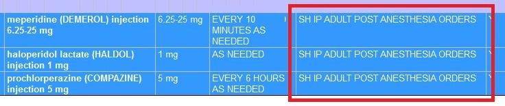 Starting 2/1, any orders originating from this order set for a patient outside of the peri-op areas can be discontinued by the pharmacist without bothering you with a page to ask permission. This clean-up will reduce the probability that potentially inappropriate PACU orders are actually given, and reduce our vulnerability to a Joint Commission citation by removing duplicate PRN medication orders.
