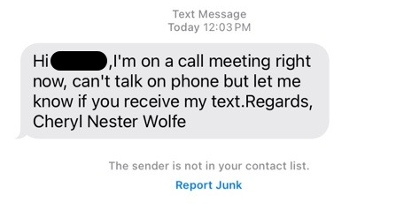 Once again, some Salem Health staff are receiving fake text messages claiming to be from President and CEO Cheryl Nester Wolfe, RN.
