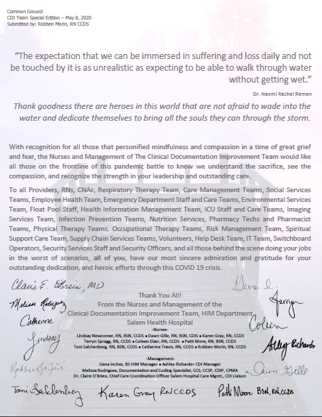 Salem Health’s clinical documentation team is honored to share this message with all providers: