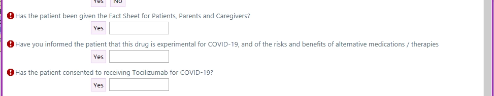Since Tocilizumab is available via an EUA, patient/ LAR education and chart documentation is required for use. Both providers and pharmacists have responsibilities when using or verifying EUA medications: