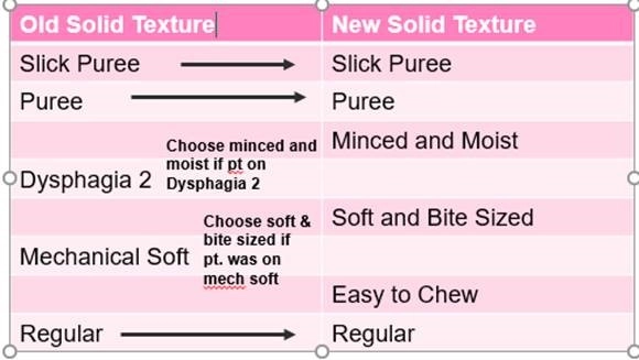 Use the box below to help you choose new diets for your patients that are readmitting and have the old terminology in prior notes or orders.