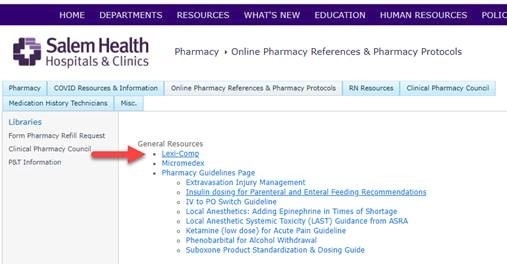 If you want to familiarize yourself with Lexi, you can find Lexi in orders as you enter them or the MAR, at this link, or on the pharmacy intranet page in the "Online Pharmacy References" tab (see the pictures below).