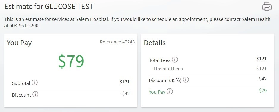 Salem Health now offers free online estimates for more than 300 health care services. These services can be scheduled in advance, which gives your patients the ability to “shop” around before “buying.”