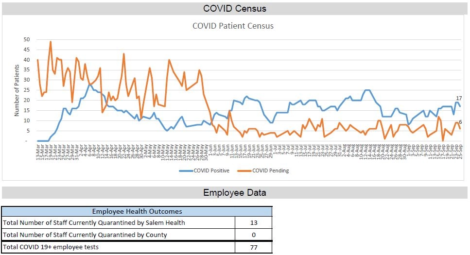 • Total number of COVID-19+ deaths (at Salem Hospital) = 39