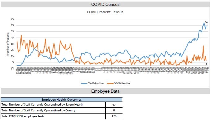 • Total number of COVID-19+ deaths (at Salem Hospital): 65